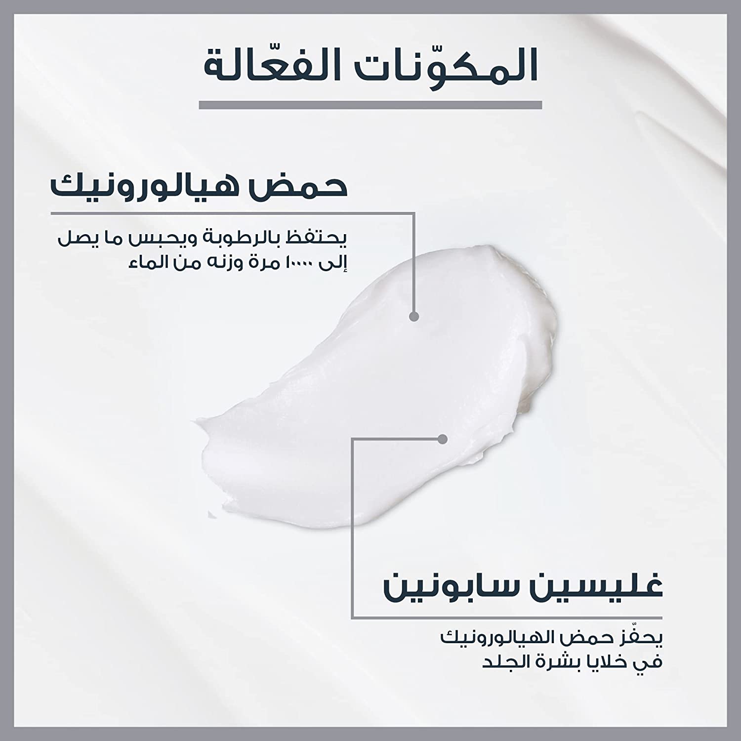 - حمض الهيالورونيك (وزن جزيئي منخفض وعالي): يرطب بعمق ويملأ التجاعيد من الداخل والخارج.