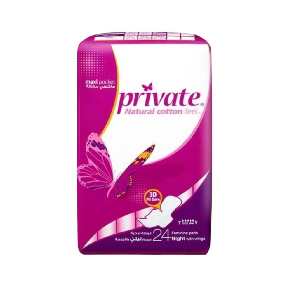 برايفت فوط صحية 24 فوطة حجم ليلي بالأجنحة ملمس القطن private maxi pocket feminine pads night with wings 24 pads